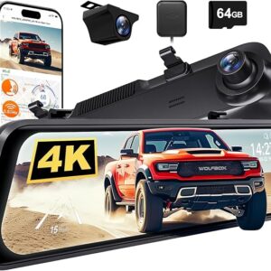 WOLFBOX G850 PRO 4K Dashcam con ADAS e BSD, specchietto retrovisore intelligente con WiFi da 5,8 GHz, controllo vocale, telecamera posteriore da 12 pollici con scheda da 64 GB, GPS, sensore G